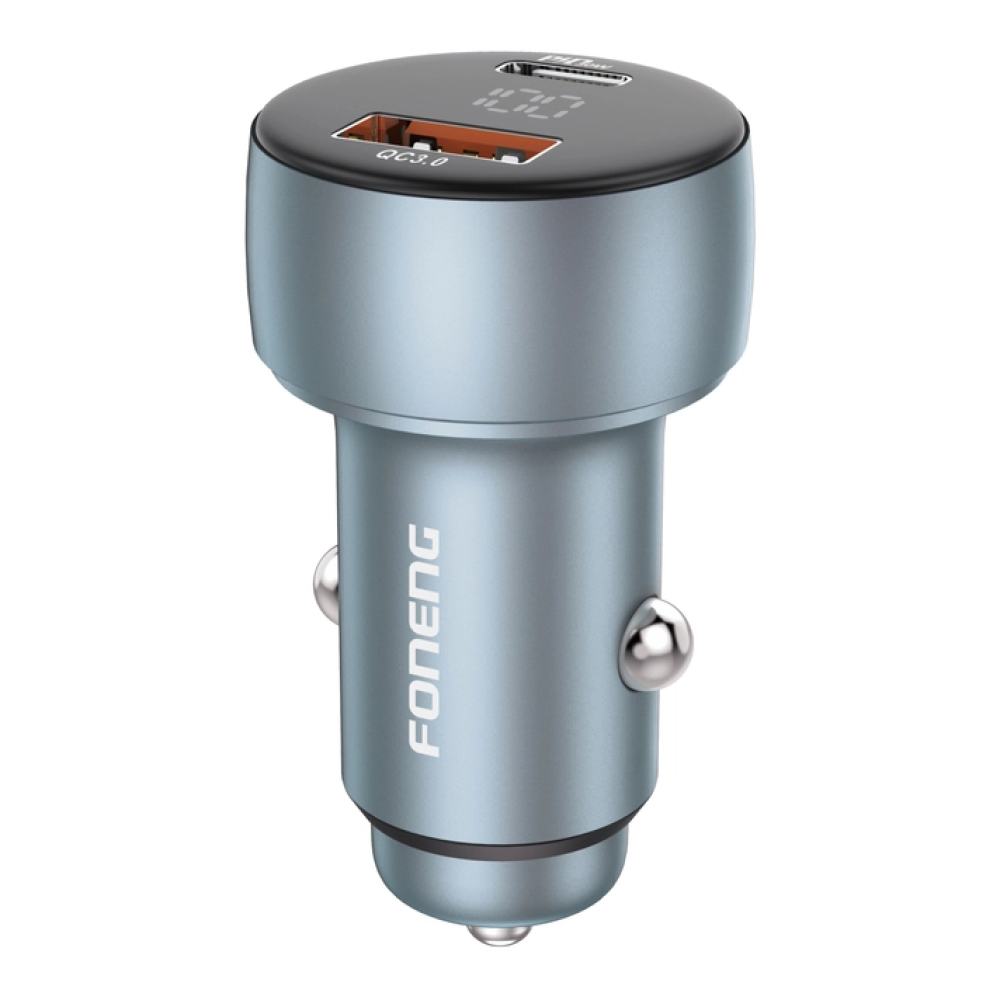 Prodotto CompatibileCaricabatteria da auto 2 porte USB e Type-C FONENG C18 48W PD QC 3.0 silver.