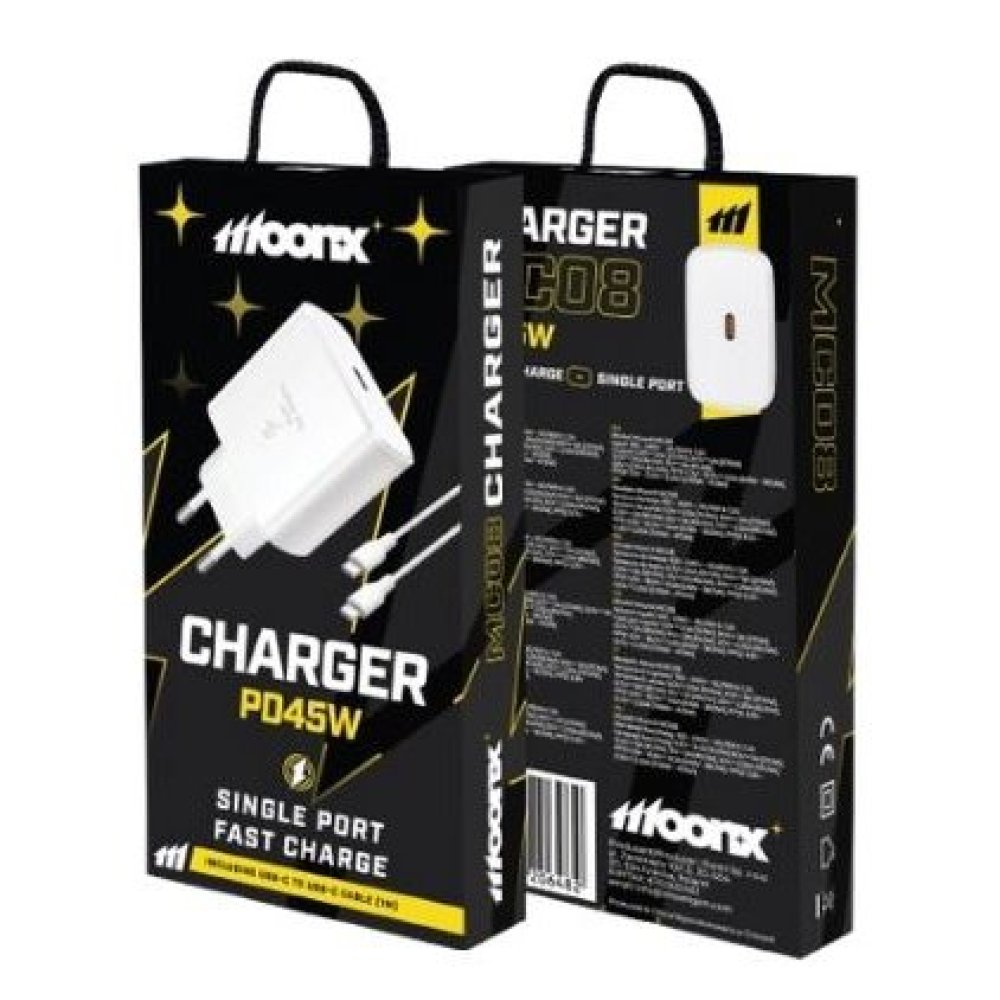 Prodotto CompatibileCaricabatterie da casa Type-C Moonx MC08 PD 45W con cavo Type-C white.