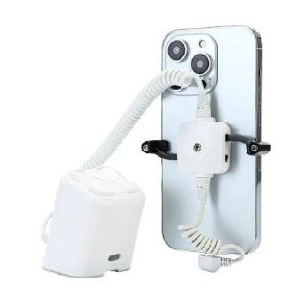Supporto espositore antifurto per cellulare lightning. Garantisce sicurezza contro i furti, facile da installare, consente l’utilizzo del telefono in posizione verticale o orizzontale.